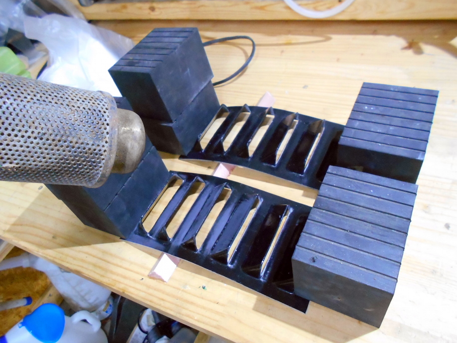 ヒートガンで全体の温度を上げ、じっくりと曲げていきます。 |