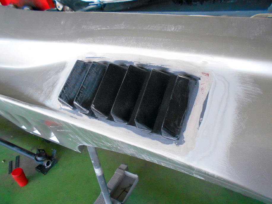 フェンダーとダクトの裏側を少し削って段差を無くし、ガラスマットで接着します。