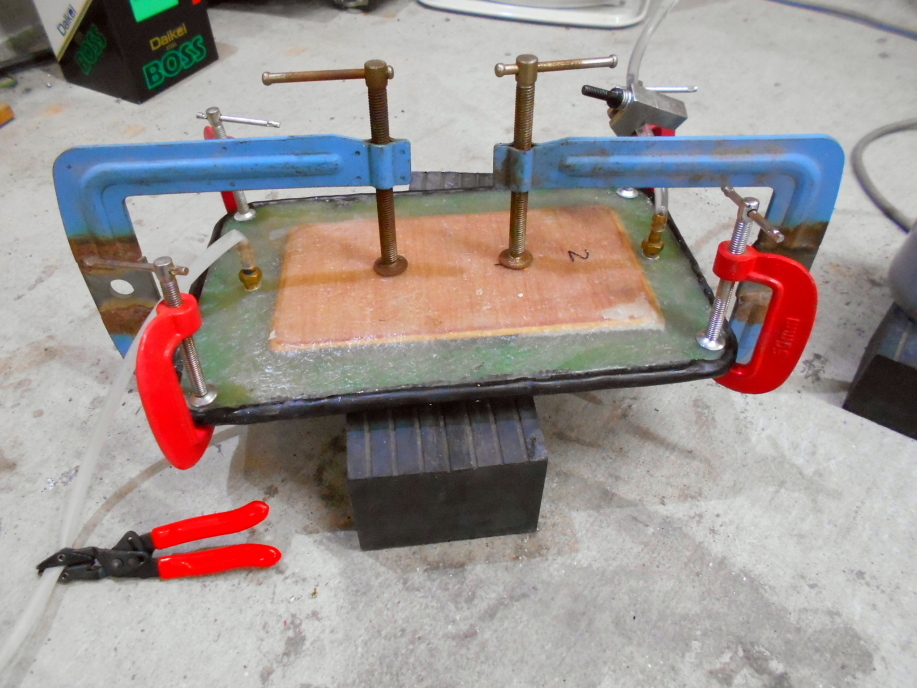 通常のビニールでのバギングでは一苦労する真空の保持は型の合わせ目にグルっと両面テープを貼っただけで簡単に出来ました。