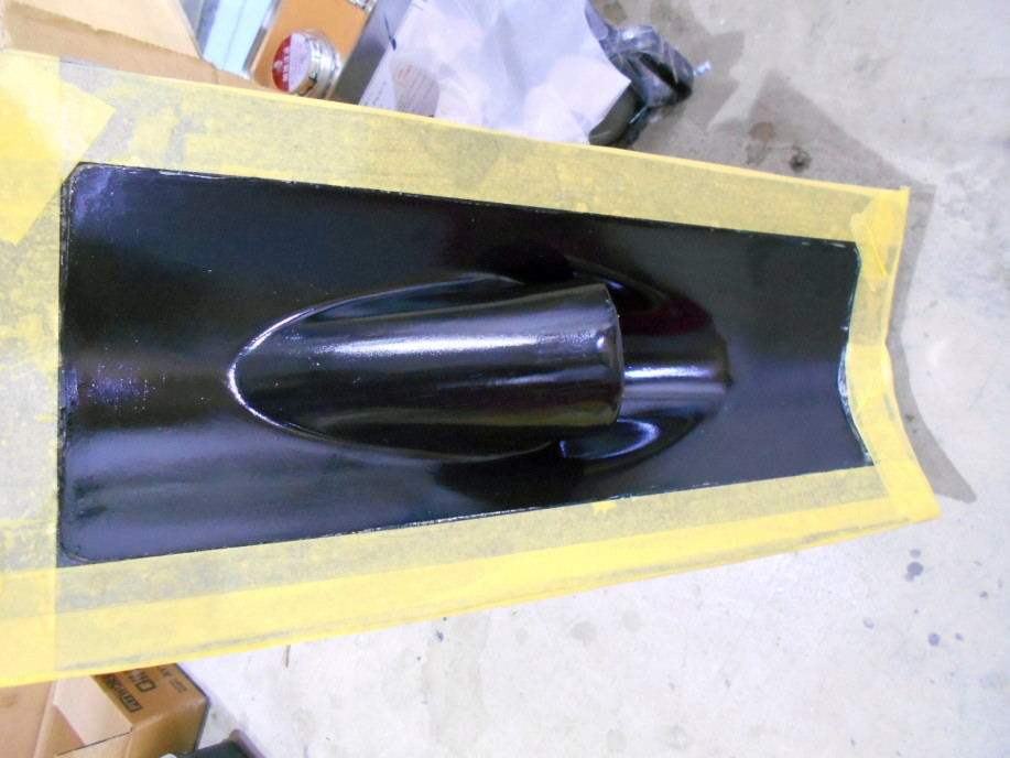 | この先は毎度の作業、離型処理、PVA、ゲルコートを行います。 ゲルコートは製品用(黒)しか手持ちが無かったのでメス型、製品共同じゲルコートを使用。 ゲルコートはいつもはガンで吹き付けますが、今回は小さい型だったので刷毛塗りしました。 |