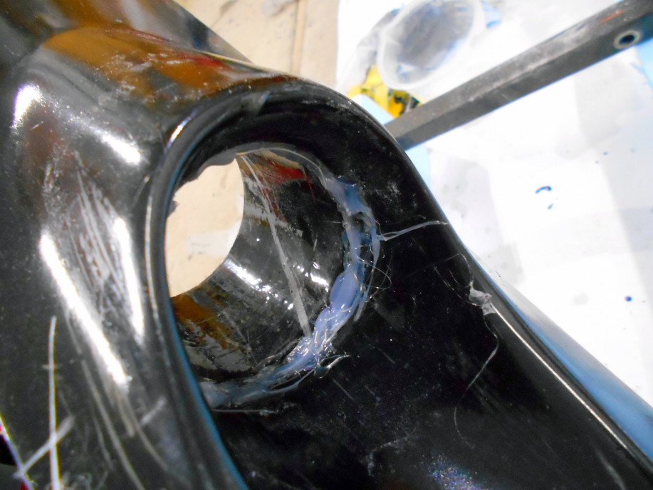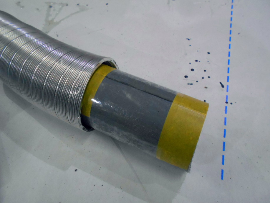 | 抜いたFRP管を必要な長さに切って合わせ面を調整し、 ダクト本体とホットボンドで内側で仮固定。 |