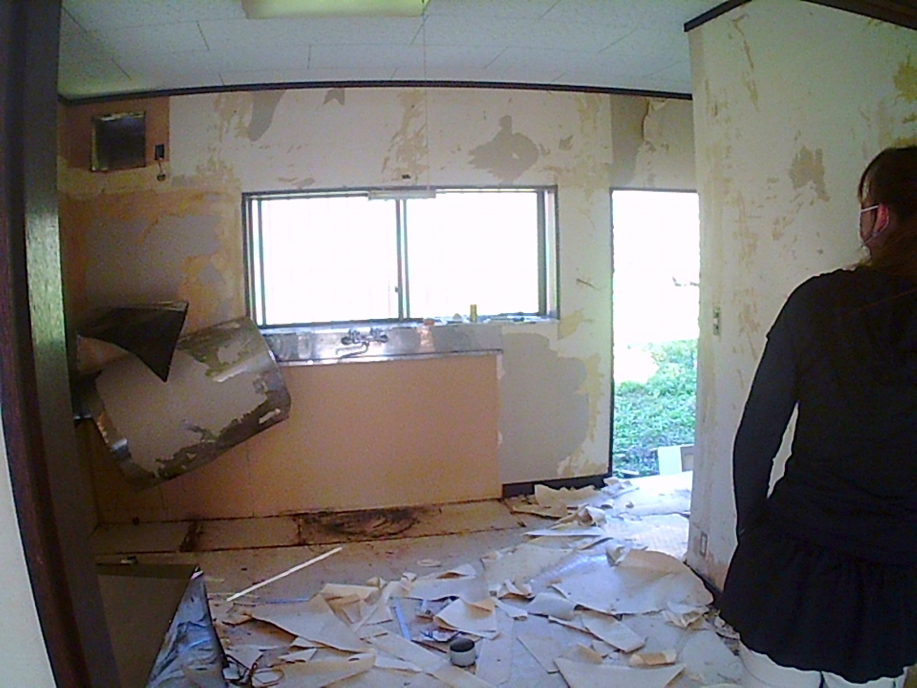 | 築27年で10年間空き家だったこの物件、外見はそれほど傷んでいませんでしたが、 内部はご覧の通り。 あまりの荒れ具合にカミさん呆然(笑) まぁこのくらいヒドイほうがやりがいがあるってもんです! |