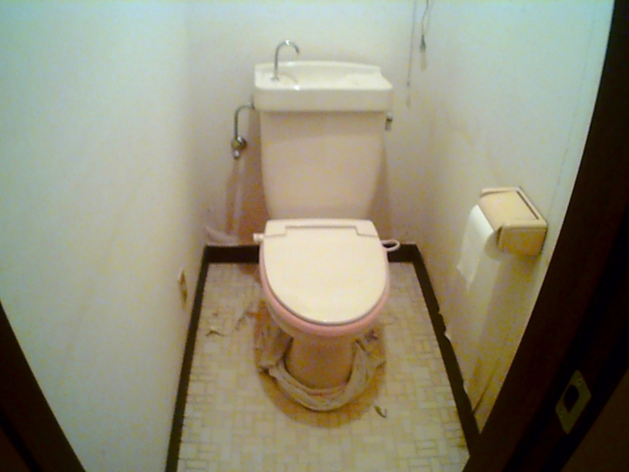 | 入居後間もなくトイレが水漏れ・・・。 便器と床の間から水が漏れているので調べたところ、パッキン交換すれば直りそうでしたが、古い便器なので思い切って新品に交換することにしました。 外すとトイレが使用出来なくなるので大至急で新品の便器をネットで注文。 |