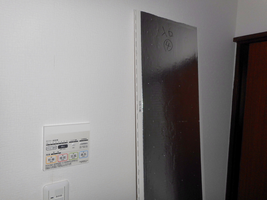 | パネルは正確に採寸後に取り外し、番号を書いて保管しておきます。 浴室乾燥機のリモコンは既に脱衣所の壁に取り付けてあります。 |