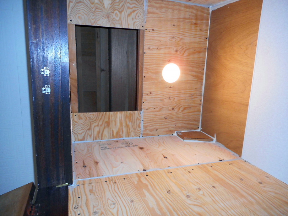 | その後構造用合板を床の形状に合わせて切り出してビス留め。 かなりしっかりとした床になりました。 |