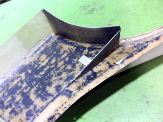 | タイヤハウス後下部も簡易雌型を作り、 先にパネルを作っておきました。 |