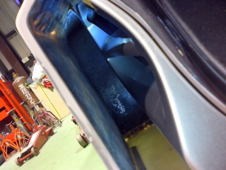 | 純正のサイドエアインテークに空気を導く為に フェンダーの裏側にFRP板をこんな感じで接着。 行き止まりにします。 |